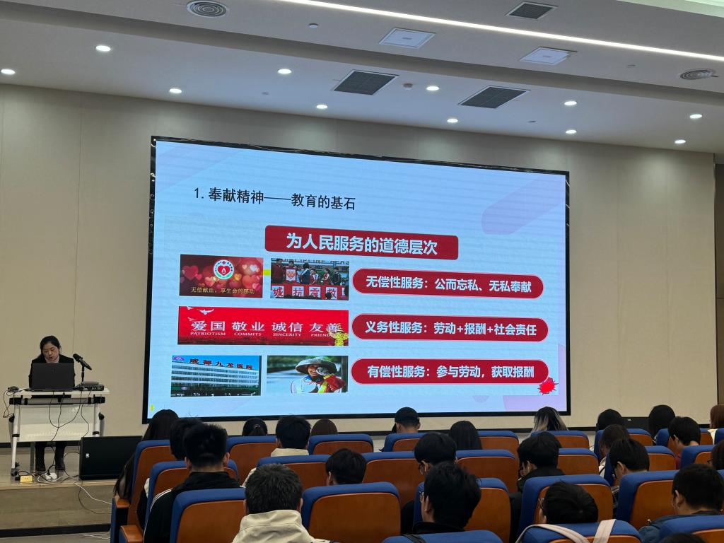 11月21日下午,马克思主义学院褚敏老师在文法东楼A104报告厅为我院学生带来了一场主题为“深入学习贯彻习近平总书记《论教育》——大力弘扬教育家精神”的精彩宣讲。