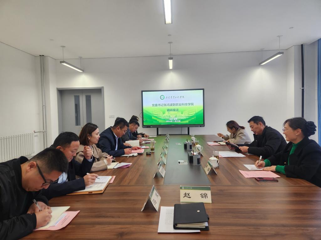 11月28日下午,校党委书记张鸿波到农业科技学院调研指导工作。党委委员、党委组织部部长韩娟,党委组织部副部长王岑竹,我院领导班子成员、科级干部、教研室主任参加调研。