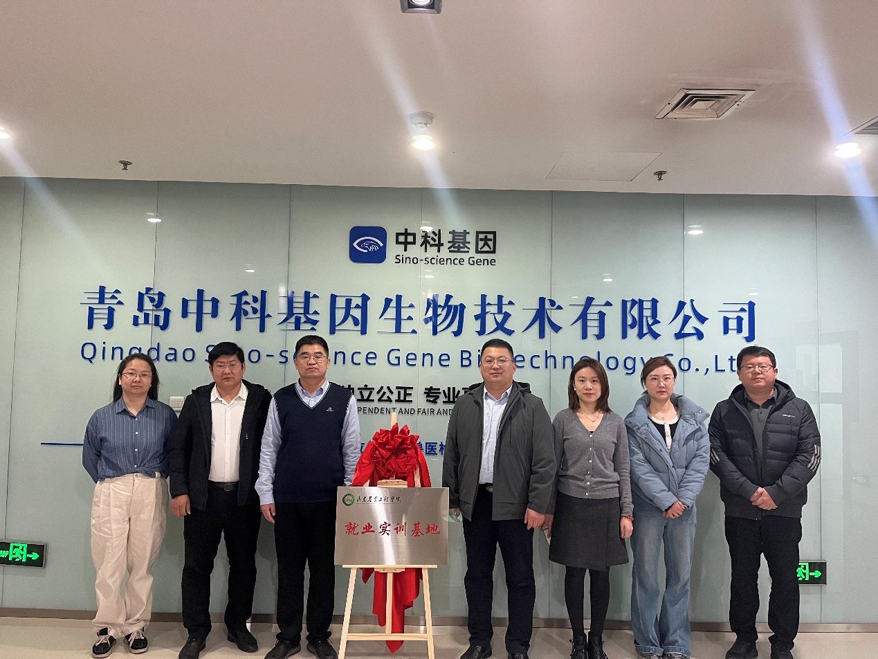 2月21日,农业科技学院与青岛中科基因生物技术有限公司举行“就业实训基地”挂牌仪式。学院党总支书记王猛、副书记刘书兵,青岛中科基因总经理王合亮等相关人员出席仪式。