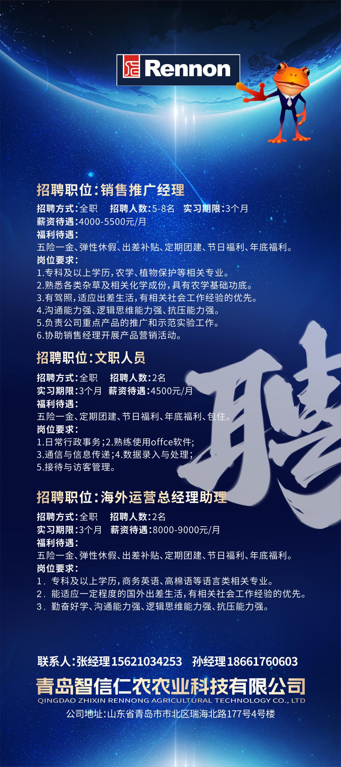 青岛智信仁农农业科技有限公司2024年招聘简章