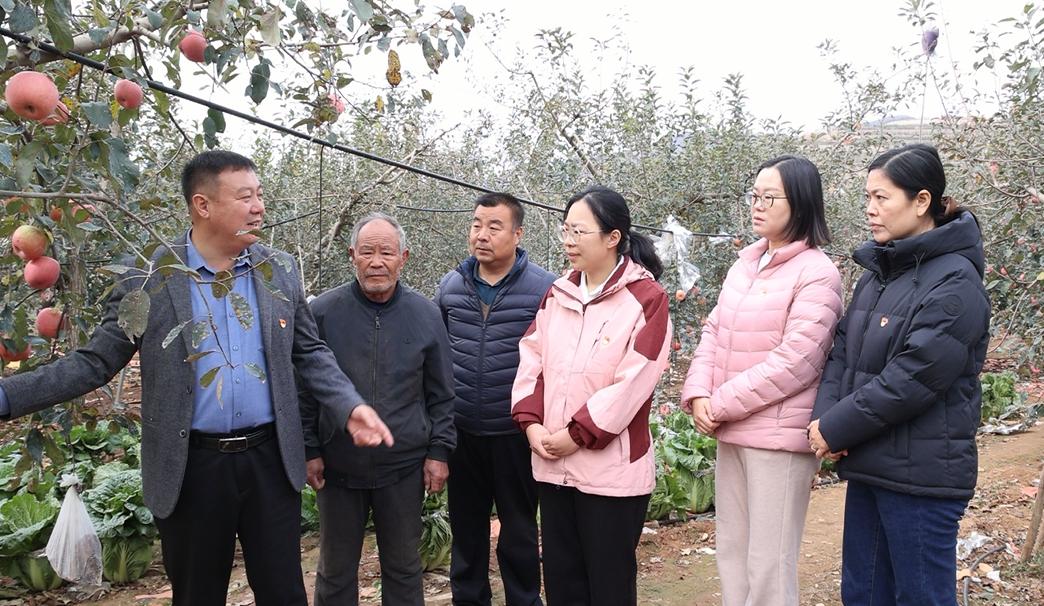 2024年11月19日,在刘进教授团队的苹果新品种试验基地,刘进教授向教工党支部联合党建活动小组对新育成的‘雪丽红’苹果新品种选育情况进行了介绍,并为果农讲解了秋冬季果树管理办法。当地果农也对刘进教授团队的科技助农工作给予了充分的肯定和认可。展望未来,农业科技学院将持续深化党建引领,不断探索科技服务新路径,全面提升基层服务效能,切实把科技优势转化为发展优势,继续在建设农业强国新征程中勇担新使命。