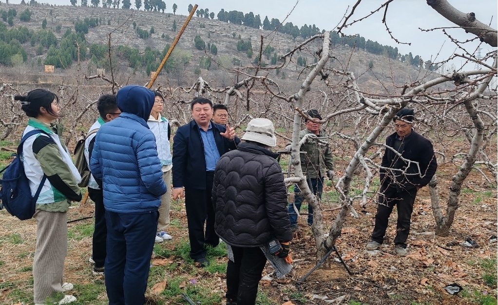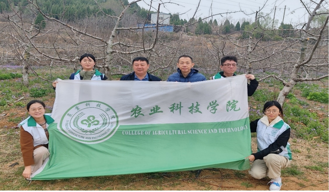 3月27日,农业科技学院刘进教授、孙晓明副教授和盛寅生博士前往肥城桃产业创新研究院,深入生产实践基地,并带领两名在校生开展产业实践。