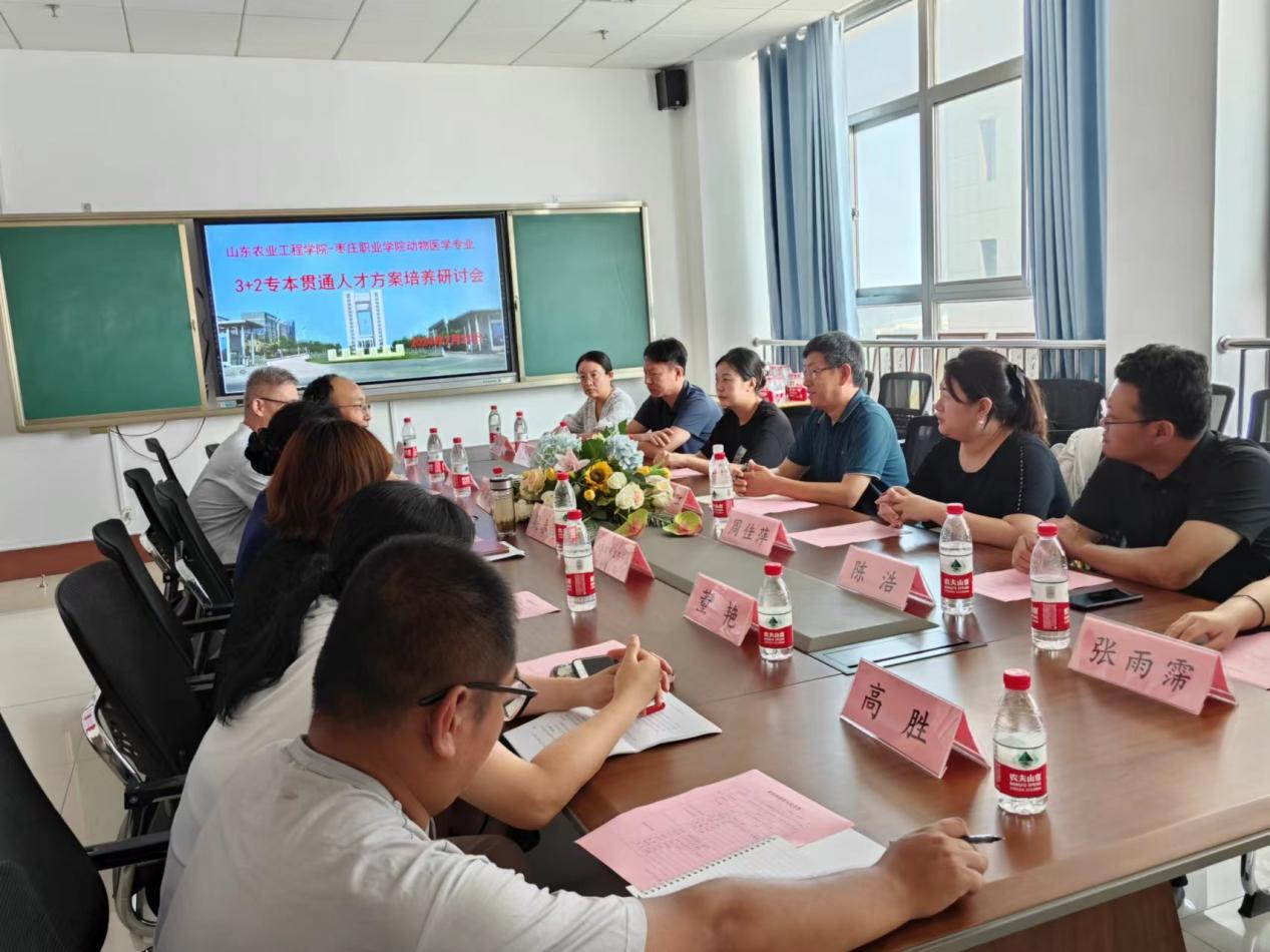 2024年7月24日,农业科技学院副院长刁有江带队到枣庄职业学院开展动物医学专业“3+2”专本贯通合作研讨。会议由枣庄职业学院农学系主任梁春鸿主持,参会人员包括专、本贯通学校教师代表和合作企业山东健袖生态科技有限公司的代表。