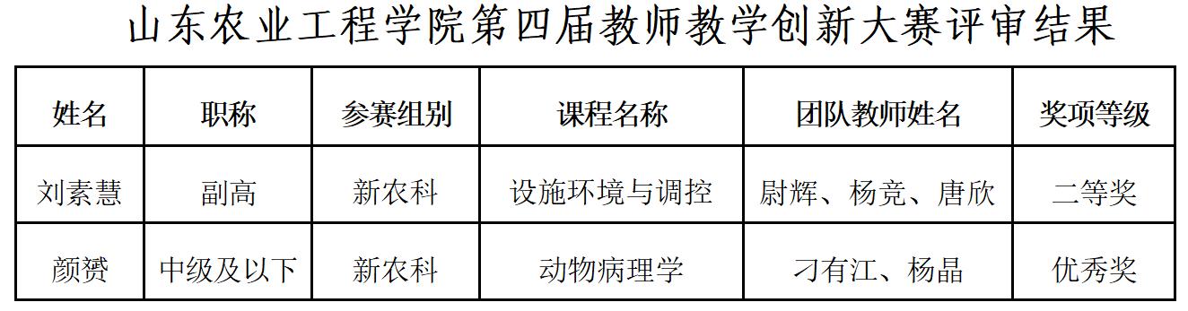 近日,bat365正版唯一官网第四届教师教学创新大赛评审结果揭晓。我院刘素慧老师主讲的《设施环境与调控》荣获新农科副高组二等奖;颜赟老师主讲的《动物病理学》荣获新农科中级及以下组优秀奖。