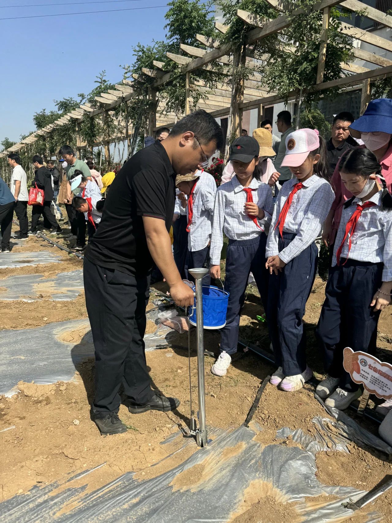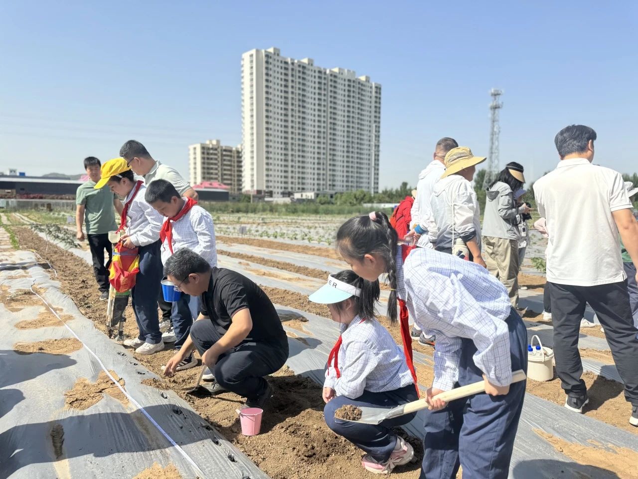 劳动现场,在李庆凯博士的耐心指导下,经五路小学的同学们个个干劲十足,正确地使用种植工具,分工明确,有模有样地干起来,他们脸上洋溢着劳动的喜悦,大家在种植中体验、在体验中研究、在研究中成长、在成长中收获。