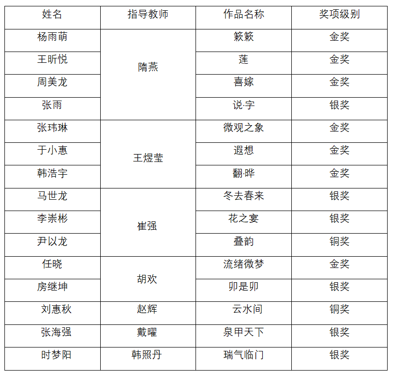 我院工艺美术专业学生作品在“荷花杯”山东省工艺美术设计创新大赛中喜获佳绩,共荣获奖项15项,金奖7项,银奖6项,铜奖2项。