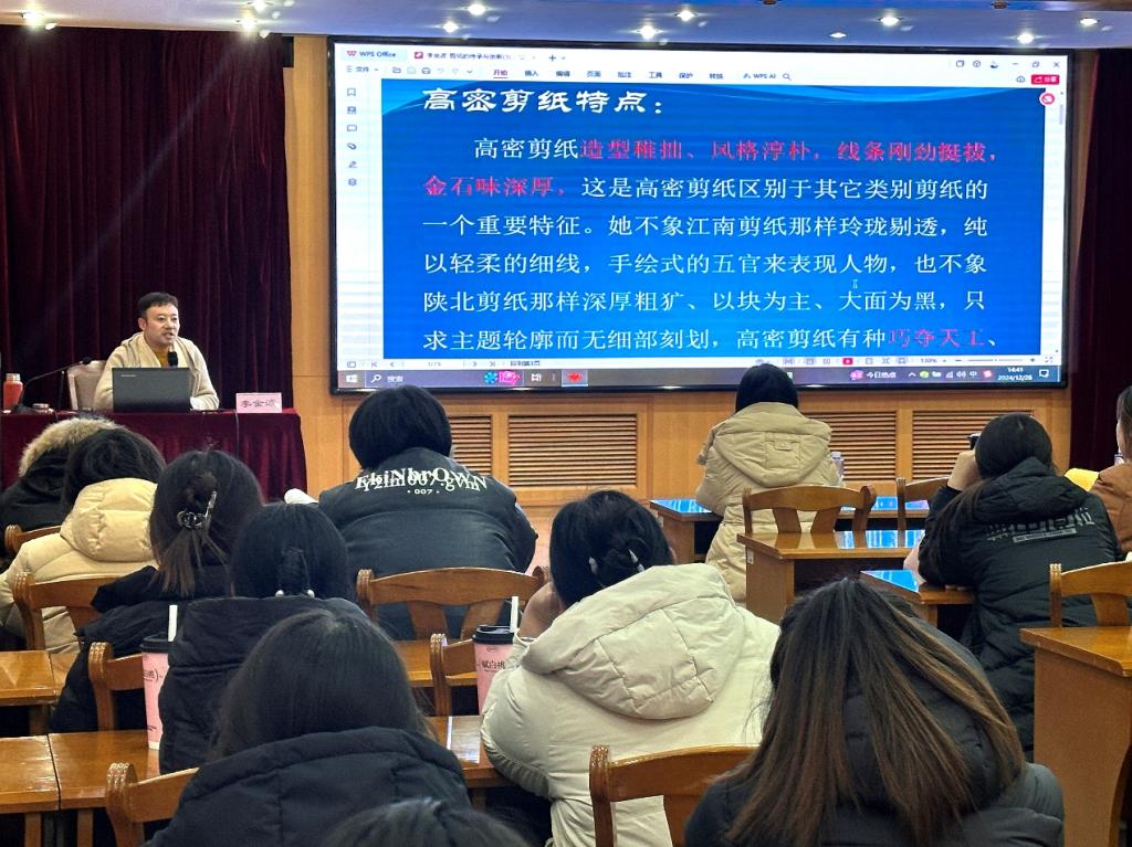 此次讲座不仅为工艺美术专业的学生提供了与国家级非遗传承人面对面交流的机会,也为高密剪纸这一传统艺术的传承与推广注入了新的活力。今后,艺术学院将继续邀请更多非遗传承人和艺术大师走进校园,为学生们带来更多精彩的优秀传统文化和民间艺术,赋能传统优秀文化创造性转化和创新性发展的教学与实践。