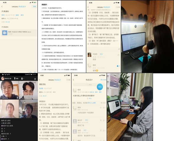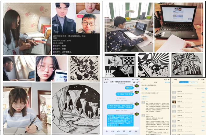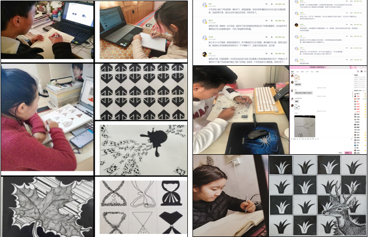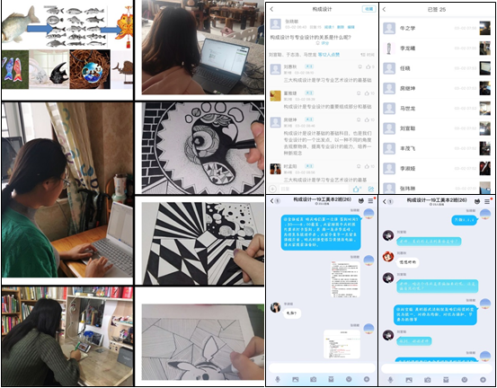 开启线上课堂,预示着很多工作都要从零开始,《构成设计》课程教学团队的老师们根据学院开展网上教学的预案,对课程教学进行了深入细致的研讨,主要围绕三个方面的问题:1.如何保证线上教学的成效,达到预期的教学目标?2.如何让课堂生动,调动学生的学习积极性?3.如何对学生学习质量做好监督和评价?针对这些问题,老师们积极探索,有针对性性的对教学平台的选用、教学模式、教学内容和教学方法等进行反复的推敲和落实,切实做好对学生的课前、课中和课后的教学质量的控制,尤其在课中采用随机抽查和将镜头给学生的方法解决线上教学所存在的远程问题。