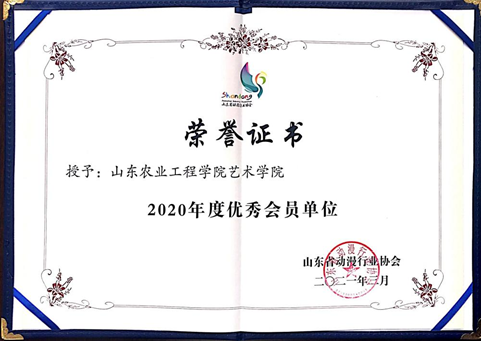 2021年3月山东省动漫行业协会为鼓励2020年度在我省动漫行业领域做出突出贡献的会员单位,根据《山东省动漫行业协会优秀会员单位评审办法》最终评选出bat365正版唯一官网艺术学院等17家会员单位为“优秀会员单位”。在评选过程中我院艺术学院从山东师范大学、山东艺术学院等13所高校中脱颖而出,是唯一获得“优秀会员单位”荣誉的高校单位。