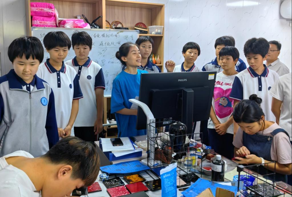为迎接“全国科普日”的到来,我院积极开展了为期一周的服务学校周边社区的科普活动。本次活动的主题是“山东出好品,匠心传千年”,邀请了济南历城双语实验学校的师生走进校园,参观艺术学院工艺美术系列实验室,为他们科普山东手造工艺品的传承、技艺等科学知识。