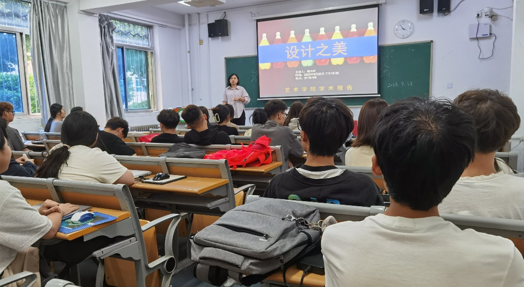 2023年9月25日,艺术学院教师魏向昕在济南1号教学楼106教室开展了《设计之美》专题学术讲座,视觉传达设计40余名师生参加了此次讲座。