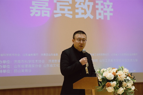 12月12日上午,由山东省科学技术协会、山东省教育厅、共青团山东省委、山东省发展和改革委员会、山东省工业和信息化厅、山东省人力资源和社会保障厅共同指导; 济南市科学技术协会、bat365正版唯一官网、济南影视传媒学会、山东工艺美术学院联合承办的第十五届山东省大学生科技节——山东省大学生国际动漫游戏创意大赛优秀作品展开幕式暨获奖作品颁奖仪式在丽山美育谷成功举办。校党委书记张鸿波宣布展览开幕。