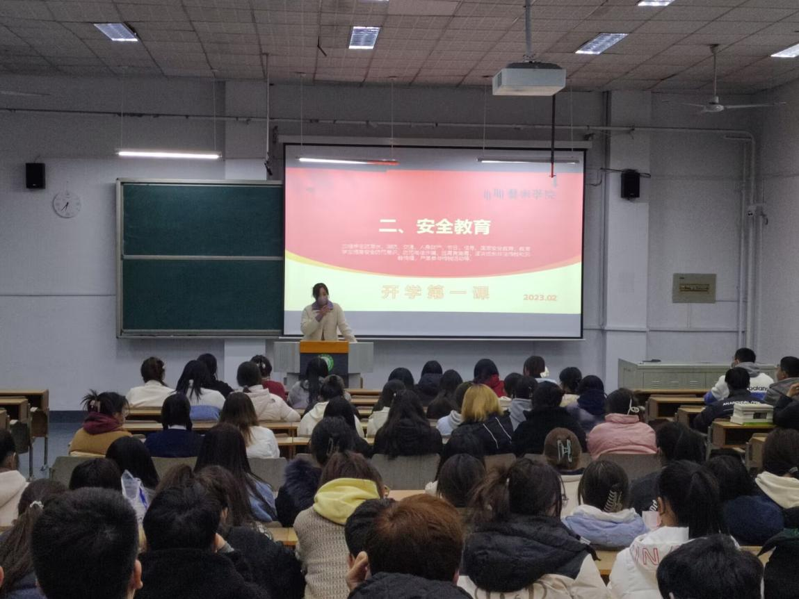 春风浩荡满目新,扬帆奋进正当时。经过愉快而充实的寒假,艺术学院学生在春暖花开之际,带着梦想和憧憬,再次相约回到阔别已久的校园。2023年是全面贯彻落实党的二十大精神的开局之年,也是bat365正版唯一官网建校70周年华诞,为提高学生坚定不移听党话、跟党走的思想政治意识,培养学生敬校、爱校凝聚力,以奋进姿态开启2023年春季学期新征程,艺术学院利用学生返校第一周,结合学校实际情况,从思政教育引导、安全教育学习、心理健康安全教育、疫情防控技能以及校庆教育等多方面入手,通过多种形式开展了 “开学第一课”系列教育活动。