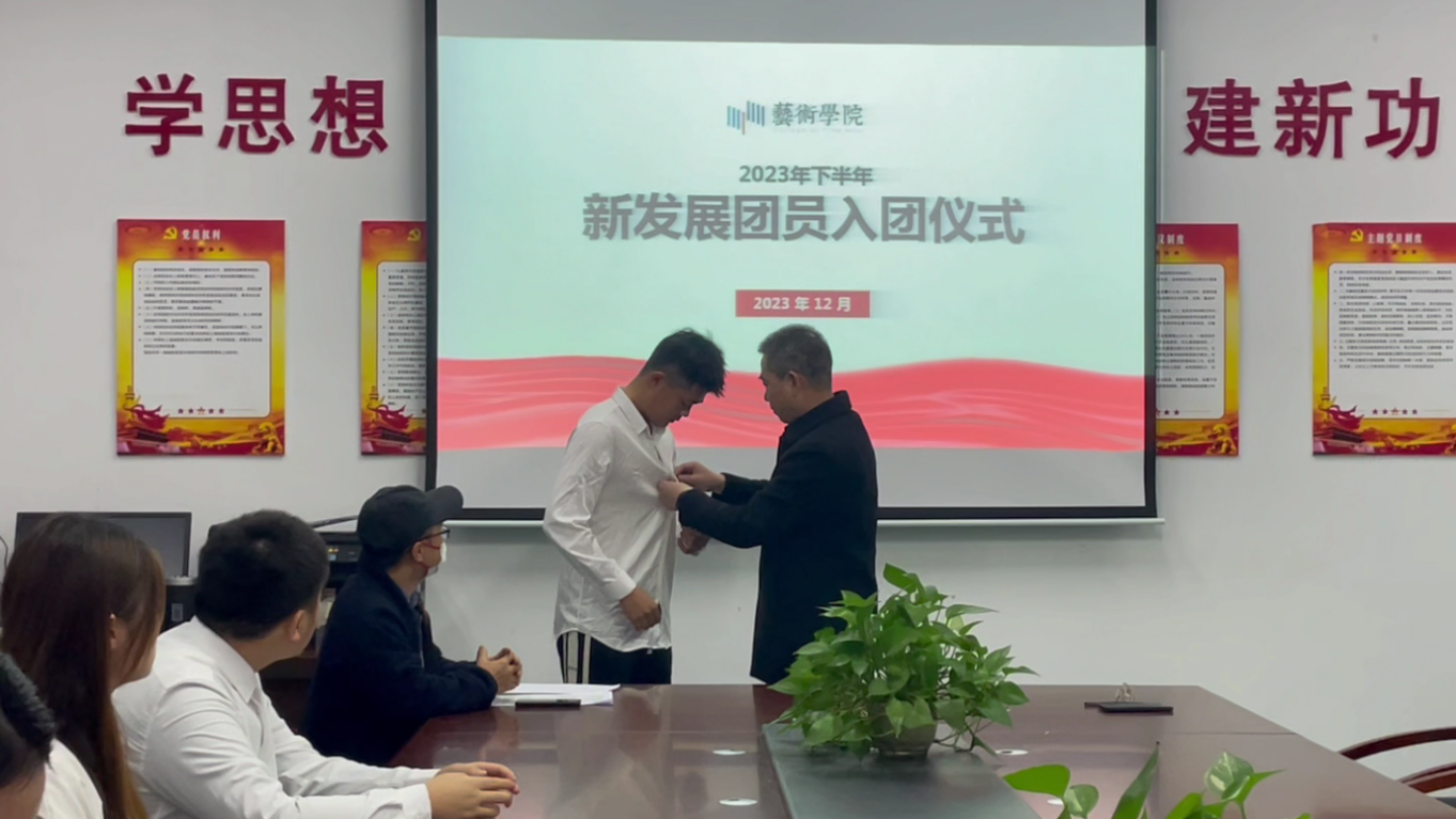 2023年12月6日,在艺术学院党、团两级组织的具体筹划下,艺术学院新老共青团员们齐聚一堂,在一教108党建工作室隆重召开了新发展共青团员入团仪式。