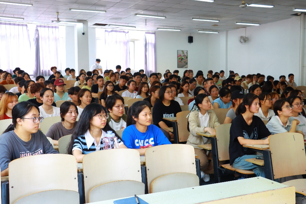 魏陵从学校的地理位置、大学生活、优良学风以及在校规划等方面,为新生们描绘了一幅丰富多彩的大学生活蓝图。他强调,合理规划学习与生活,踊跃参与各类社团活动与学术竞赛,是加速个人成长和拓宽视野的宝贵途径,并鼓励同学们珍惜每一次学习和锻炼的机会。