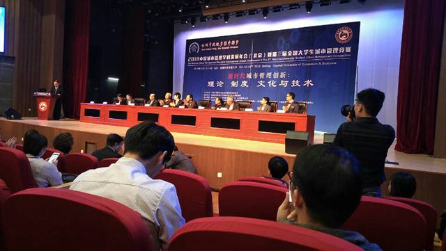 本次年会由中国区域科学学会主办,首都经济贸易大学承办,年会围绕“新时代下城市管理创新:体制、机制与技术”的主题,分别召开了城市管理理论与新型城镇化、城市公共品供给与民生福利、城市病、城市安全与法治、城市政府服务与文化建设、智慧城市与精细化管理、城市基层治理、社会参与和多元共治六个分论坛,旨在探索城市管理专业发展思路、对策和人才培养模式,探寻国家“一流专业”的创设路径,推动全国城市管理的专业建设、学科发展以及学术繁荣,更好服务国家和地方社会经济与新型城镇化进程。