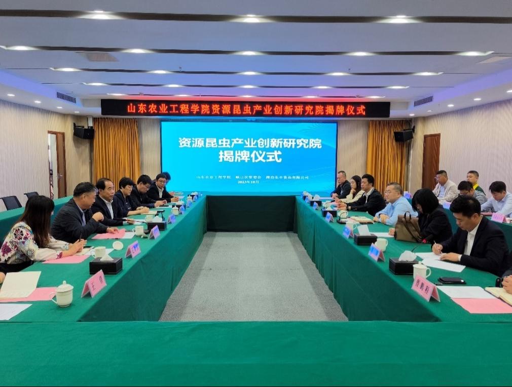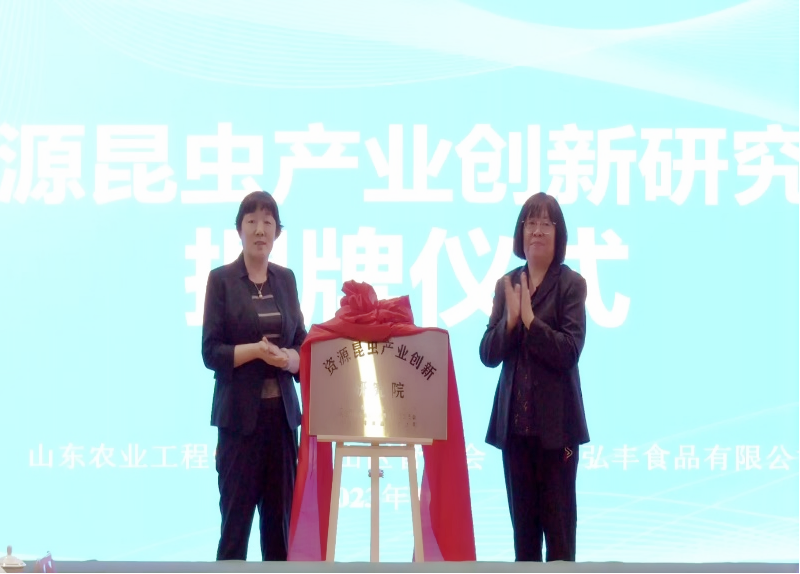 会上,党委委员、副校长郑华美与潍坊市科技局二级调研员安卫红共同为资源昆虫产业创新研究院揭牌。