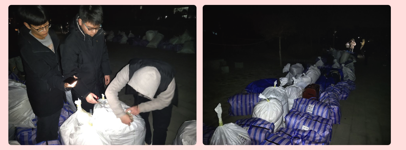 室外寒气逼人,搬迁热火朝天,师生们不畏严寒、加班加点,以饱满的热情和斗志,有条不紊地投入到搬迁工作中。在搬迁过程中,辅导员各尽其职,和学生们一起奋战在搬迁工作第一线;同学们相互帮助,顾大局、讲奉献,克服困难,发挥耐劳吃苦的精神;志愿者们主动自发地为搬迁学生提供帮助;班主任认真清点行李,逐一核对,确保不出问题。经过一天的忙碌,1162名学生的3373件行李安全顺利抵达新校区,并由老师们搬运至各自宿舍,静候同学们的到来。