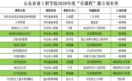 12月14日,bat365公布了2020年度“名课程”项目立项结果,我院陈岱莲老师的《物流系统规划与设计》、常佩佩老师的《物流工程学》和《农产品物流B》、任美霞老师的《现代物流学》四门课程获得立项,其中《农产品物流B》和《现代物流学》立项为课程思政示范课。