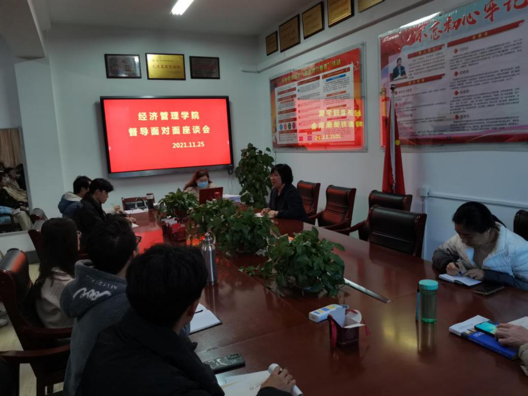 11月19日下午和25日下午,我院分别在齐河校区2-517教室和济南校区1-311党建活动室召开了经济管理学院督导面对面座谈会。参加座谈会的同学包括学生会代表及各专业班级学生代表共76人,学院督导组老师和部分政治辅导员与学生代表共同座谈。
