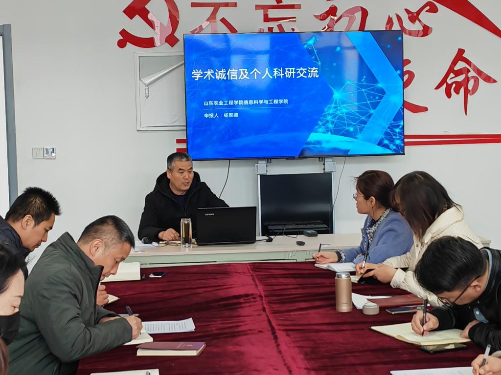 为响应学校科研诚信专项整治活动,杨现德院长于2023年3月16日面向全员教职工做了“学术诚信及个人科研交流”专题讲座。杨院长从学术诚信的重要性及个人科研的心得交流等几个方面谈了对学术诚信的理解及个人在科研方面的一些心得体会。